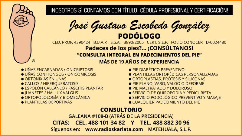 En Radio Skarlata nos dedicamos a ofrecer una combinación única de medicina, podología, música y cultura. Nuestra emisora es tu fuente de bienestar y entretenimiento en Matehuala, México.